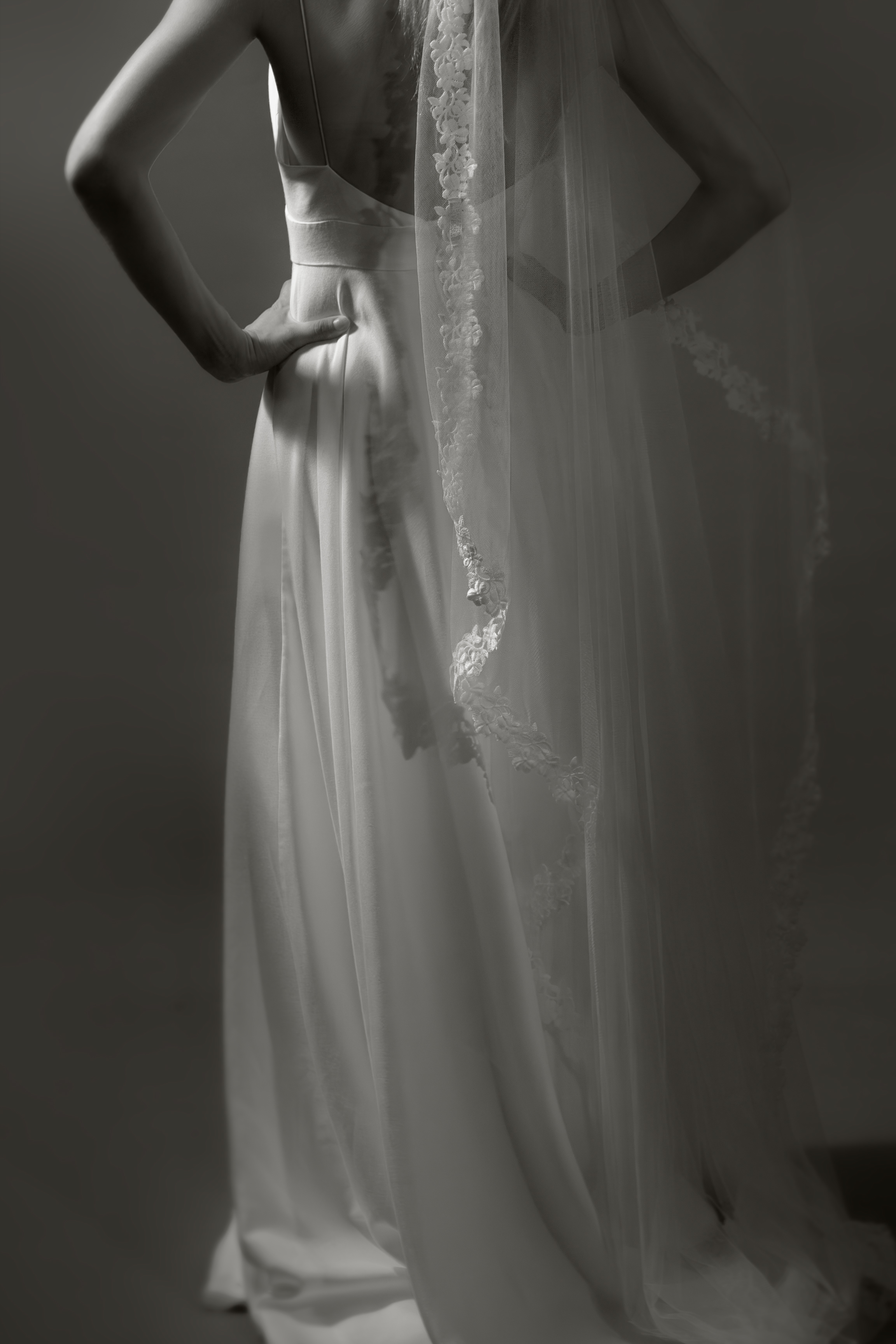 Notre atelier en Bretagne près de Rennes et nos boutiques partenaires, dans toute la France ou à l'étranger, vous accueillent sur rendez-vous pour vous aider à trouver la tenue idéale. L'essayage permet d'ajuster la taille, la longueur, de choisir les bretelles ou manches les mieux adaptées, et d'opter pour les finitions qui vous correspondent.